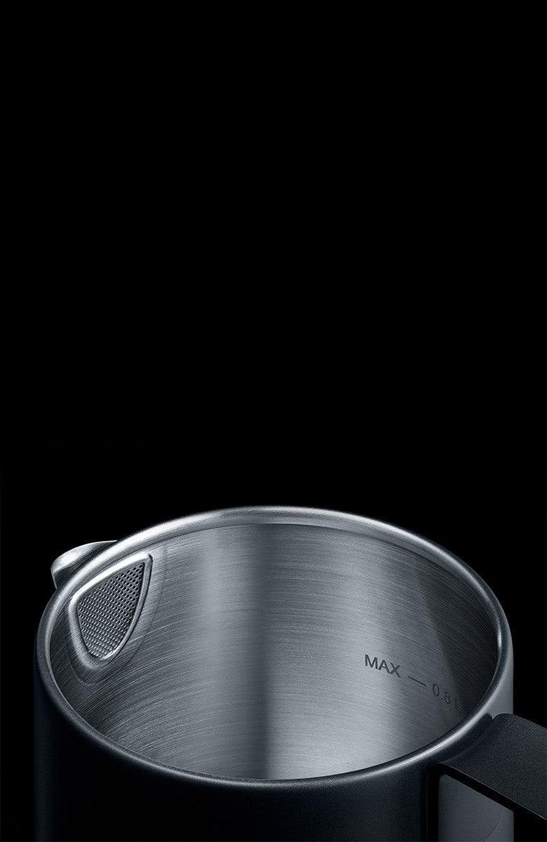 - Легкая очистка: Чайник SAKI с устойчивой к пятнам и отпечаткам пальцев поверхностью легко очищается простым протиранием, идеально подходя для ежедневного использования.